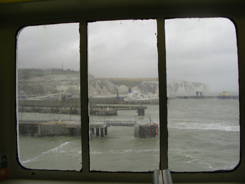 Arrival in England with the carferry (Dover).